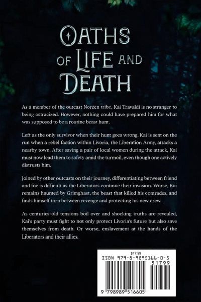 Of the five faumen tribes, the cat-like Norzen are viewed as dangerous outcasts, rejected by many for the sins of their most infamous member: the heretical Cacovis. Kai is a young Norzen apothecary serving as a member of the Hunter Corps, dedicated to culling dangerous beasts which wander into the Grand Duchy of Livoria. After a hunt goes terribly wrong, Kai is left the sole survivor of his squad while a rebel faction within Livoria, the Liberation Army, desires the eradication of all faumen and fans the flames of civil war. Now on the run, Kai finds himself responsible for leading a pair of local women to safety amid the turmoil, one of whom actively mistrusts him. Joined by other outcasts on their journey, it becomes difficult to differentiate friend and foe as the Liberation Army continues its advance. Worse still, Kai remains haunted by Grimghast, the beast that killed his squad, leaving him torn between revenge and protecting his new crew. As centuries-old tensions boil over and shocking truths about his past are revealed, Kai and his rag-tag group fight to not only protect Livoria's future but also save themselves from enslavement or death.