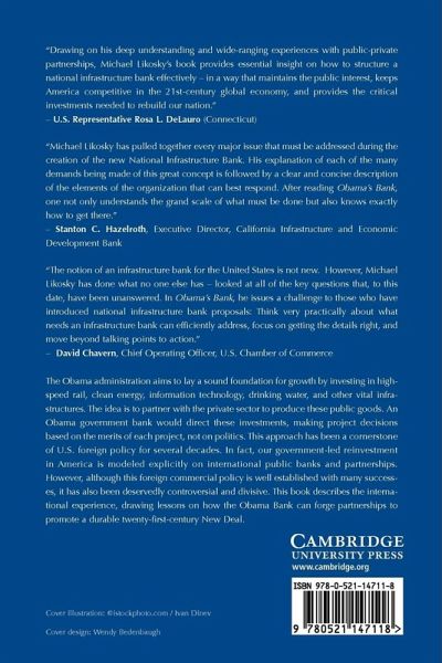 "Drawing on his deep understanding and wide-ranging experiences with public-private partnerships, Michael Likosky's book provides essential insight on how to structure a national infrastructure bank effectively, in a way that maintains the public interest, keeps America competitive in the 21st century global economy, and provides the critical investments needed to rebuild our nation." - U.S. Representative Rosa L. DeLauro (Connecticut)