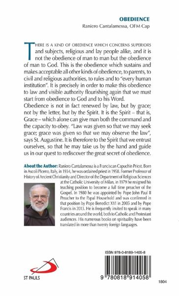 There is a kind of obedience which concerns superiors and subjects, religious and lay people alike, and it is not the obedience of man to man but the obedience of man to God. This is the obedience which sustains and makes acceptable all other kinds of obedience, to parents, to civil and religious authorities, to rules and to "every human institution". It is precisely in order to make this obedience to law and visible authority flourishing again that we must start from obedience to God and to his Word. Obedience is not in fact renewed by law, but by grace; not by the letter, but by the Spirit. It is the Spirit - that is, Grace - which alone can give man both the command and the capacity to obey. "Law was given so that we may seek grace; grace was given so that we may observe the law", says St. Augustine. It is therefore to the Spirit that we entrust ourselves, so that he may take us by the hand and guide us in our quest to rediscover the great secret of obedience.