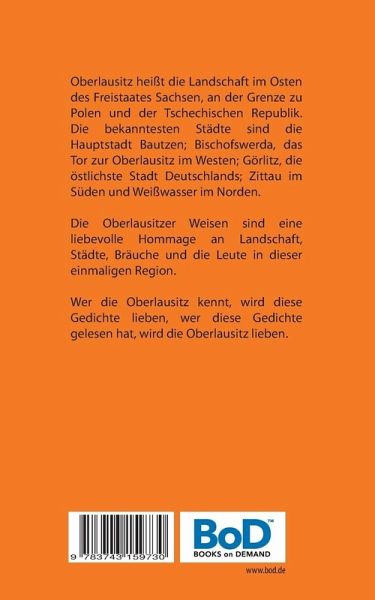 Oberlausitz heißt die Landschaft im Osten des Freistaates Sachsen, an der Grenze zu Polen und der Tschechischen Republik. Die bekanntesten Städte sind die Hauptstadt Bautzen; Bischofswerda, das Tor zur Oberlausitz im Westen; Görlitz, die östlichste Stadt Deutschlands; Zittau im Süden und Weißwasser im Norden.Die Oberlausitzer Weisen sind eine liebevolle Hommage an Landschaft, Städte, Bräuche und die Leute in dieser einmaligen Region.Wer die Oberlausitz kennt, wird diese Gedichte lieben, wer diese Gedichte gelesen hat, wird die Oberlausitz lieben.