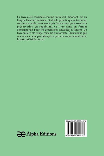 Oberman" est un livre classique, qui a eu une valeur significative tout au long de l'histoire, et pour garantir que sa sagesse intemporelle ne soit jamais perdue, Alpha Editions l'a soigneusement préservé en le republiant dans un format moderne et accessible aux générations présentes et futures. Soigneusement reformaté, retapé , et nouvellement conçue, cette édition offre un texte clair et lisible, sans copies numérisées de l'uvre originale, Alpha Editions se consacre à insuffler une nouvelle vie aux livres anciens et classiques, rendant ces trésors littéraires à nouveau disponibles pour les lecteurs qui chérissent l'histoire. culture et savoir intemporel.
