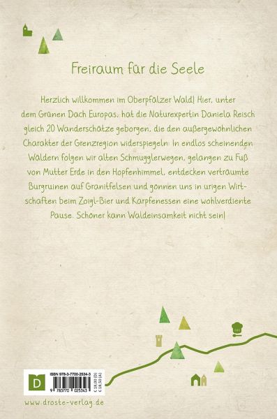 Herzlich willkommen im Oberpfälzer Wald! Die Naturexpertin Daniela Reisch hat 20 vielfältige Touren konzipiert, die den außergewöhnlichen Charakter der Region spiegeln: In endlos scheinenden Wäldern folgen wir alten Schmugglerwegen entlang der Grenze, gelangen zum Mittelpunkt Europas, entdecken verträumte Burgruinen auf Granitfelsen und gönnen uns in urigen Wirtschaften beim Zoigl-Bier und Karpfenessen eine wohlverdiente Pause. Schöner kann Waldeinsamkeit nicht sein!Unsere Wanderbücher bieten echte Wohlfühlwege für jede Stimmung. Mit eindrucksvollen Fotos, berührenden Texten und abwechslungsreichen Touren wird jede Wanderung zum besonderen Erlebnis. Entspannung und Inspiration garantiert - ideal auch als Geschenk!