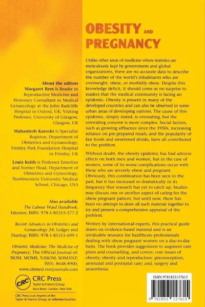 Unlike other areas of medicine where statistics are meticulously kept by governments and global organizations, there are no accurate data to describe the number of the world's inhabitants who are overweight, obese, or morbidly obese. Despite this knowledge deficit, it should come as no surprise to readers that the medical community is facing an epidemic. Obesity is present in many of the developed countries and can also be observed in some urban areas of developing nations. The cause of this epidemic, simply stated, is overeating, but the overriding concern is more complex. Social factors, such as growing affluence since the 1950s, increasing reliance on pre-prepared meals, and the popularity of fast foods and sweetened drinks, have all contributed to the problem. Without doubt, the obesity epidemic has had adverse effects on both men and women, but in the case of women, some of its worse complications occur with those who are severely obese and pregnant. Obviously, this combination has been seen in the past, but it has increased so dramatically in its frequency that research has yet to catch up. Studies may discuss one or another aspect of caring for the obese pregnant patient, but until now, there has been no attempt to draw all such material together to try and present a comprehensive appraisal of the problem. Written by international experts, this practical guide draws on evidence-based material and is an invaluable resource for healthcare professionals dealing with obese pregnant women on a day-to-day basis.
