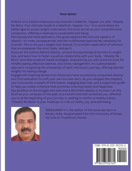 Description: Embark on a transformative journey towards a healthier, happier you with "Obesity No More: Your Ultimate Guide to a Healthier, Happier You." In a world where the battle against excess weight is pervasive, this book serves as your comprehensive companion, offering a roadmap to sustainable well-being. Delving beyond mere aesthetics, this guide explores the intricate tapestry of obesity-its roots, consequences, and the multifaceted approaches necessary for triumph. This is not just a weight-loss manual; it's a holistic exploration of wellness that encompasses the mind, body, and spirit. Discover the science behind obesity, unravel the psychological barriers to weight loss, and learn how to foster a positive relationship with your body. "Obesity No More" provides evidence-based strategies, empowering you with practical tools for mindful eating, effective exercise, and stress management. It's a personalized approach recognizing the uniqueness of each individual's journey, offering tailored insights for lasting change. Engage with inspiring stories from those who have successfully conquered obesity, and find motivation to craft your own success story. As you navigate the chapters, you'll encounter a wealth of information, engaging exercises, and a supportive guide to help you create a lifestyle that promotes enduring health and happiness. Say goodbye to the struggle and welcome a life where obesity is no more. Let this book be your compass on the path to a transformed and revitalized you. Whether you're at the beginning of your journey or seeking to reinforce healthy habits, "Obesity No More" is your roadmap to a life of vitality, joy, and well-being.