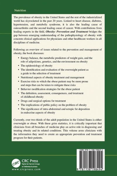 The prevention and treatment of obesity is a major concern for physicians and healthcare professionals. This book presents an exhaustive review of modern management of this widespread epidemic. Providing important information on nutrition, exercise, and behavioral management, the text discusses specific medical conditions, provides practical applications and resources, and explores future directions for the prevention and treatment of obesity. The authors cover a broad range of topics including pathophysiology, epidemiology, clinical evaluations, childhood obesity, drug treatment, as well as surgical procedures to correct obesity.