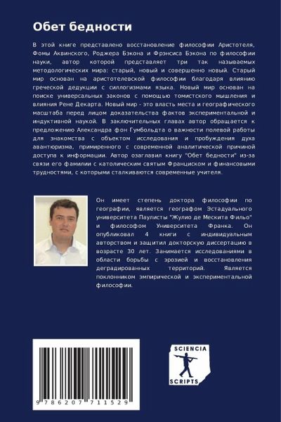 V ätoj knige predstawleno wosstanowlenie filosofii Aristotelq, Fomy Akwinskogo, Rodzhera Bäkona i Fränsisa Bäkona po filosofii nauki, awtor kotoroj predstawlqet tri tak nazywaemyh metodologicheskih mira: staryj, nowyj i sowershenno nowyj. Staryj mir osnowan na aristotelewskoj filosofii blagodarq wliqniü grecheskoj dedukcii s sillogizmami qzyka. Nowyj mir osnowan na poiske uniwersal'nyh zakonow s pomosch'ü tomistskogo myshleniq i wliqniq Rene Dekarta. Nowyj mir - äto wlast' mesta i geograficheskogo masshtaba pered licom dokazatel'stwa faktow äxperimental'noj i induktiwnoj naukoj. V zaklüchitel'nyh glawah awtor obraschaetsq k predlozheniü Alexandra fon Gumbol'dta o wazhnosti polewoj raboty dlq znakomstwa s ob#ektom issledowaniq i probuzhdeniq duha awantürizma, primirennogo s sowremennoj analiticheskoj prichinoj dostupa k informacii. Awtor ozaglawil knigu "Obet bednosti" iz-za swqzi ego familii s katolicheskim swqtym Franciskom i finansowymi trudnostqmi, s kotorymi stalkiwaütsq sowremennye uchitelq.