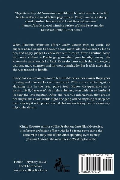 When Phoenix probation officer Casey Carson goes to work, she expects naked people to answer doors, meth-addicted clients to hit on her, and angry judges to chew her out in court. After a routine home visit with a client, a Diablo gang member, goes horribly wrong, she knows she must watch her back. Even she must admit that a one-eyed, bad-ass, angry gangster and his crew gunning for her is a bit more than she was trained to handle. Casey has even more reason to fear Diablo when her cousin Hope goes missing, and it looks like their handiwork. With women vanishing at an alarming rate in the area, police treat Hope's disappearance as a priority. Still, Casey can't sit on the sidelines, even with her ex-husband leading the investigation. After she receives information that proves her suspicions about Diablo right, the gang will do anything to keep her from sharing it with police, even if that means taking her on a one-way trip to the desert.
