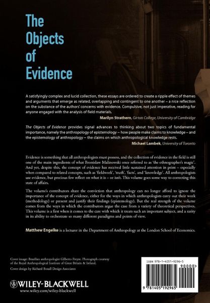 'Objects of Evidence provides signal advances to thinkingabout two topics of fundamental importance, namely the anthropologyof epistemology - how people make claims to knowledge - and theepistemology of anthropology - the claims on which anthropologicalknowledge rests.'
