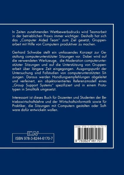 Die Gestaltung von Software für Gruppen befindet sich erst arn Anfang. Auch der weitverbreitete Einsatz wird gerade erst erwartet. Es ist daher sehr aktuell, daß Gerhard Schwabe in seiner Arbeit zeigt, wie aus einer genauen Beobachtung von Sitzungssitua tionen und aus umfassenden Überlegungen, welche Leitbilder der Softwaregestaltung zugrundegelegt werden können, ein umsetzbares und praktikables Softwarekonzept entstehen kann. Dies ist um so zeitgemäßer, als mittlerweile deutlich ist, wie eng Technikentwicklung und soziale Gestaltung im Bereich der Software für die Gruppen miteinander verbunden sind. Schwabe leistet neben der empirisch fallbezogenen Aufarbeitung von Sitzungen und der Ableitung von Entwurfskonzepten einen bedeutenden Beitrag auch für die Diskussion um die Entstehung computergestützter Sitzungsarchive und verbindet so Sitzungsunter stützung mit dem aktuellen Trend zu Organizational Memory. Die Arbeit enstand arn Lehrstuhl für Wirtschaftsinformatik der Universität Hohenheim im Rahmen der CATeam-Forschung. Die CATeam-Forschung hat sich zum Ziel gemacht, Gruppenarbeit durch Computereinsatz produktiver zu machen. Die vorlie gende Arbeit versteht es auf hervorragende Weise, deutlich zu machen, wie Computer unterstützung Sitzungen produktiver machen kann und wie geeignete Software für Sitzungen aussieht. Ich wünsche deshalb der Arbeit von Gerhard Schwabe die ihr gebührende weite Verbreitung. Prof. Dr. Helmut Krcmar 5 Vorwort Die Computerunterstützung von Sitzungen ist ein recht neues Forschungsfeld. Hierfür ein Konzept zu entwickeln war nur mit tatkräftiger Hilfe von mehreren Seiten möglich. Mein erster Dank geht deshalb an meinen Betreuer Prof. Dr. Krcmar. Seine Ratschläge, sein Interesse und seine Kritik waren mir eine großeHilfe. Prof. Dr. Schenk war so freundlich, das Korreferat zu übernehmen.
