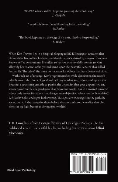 An old proverb says, "Revenge is a dish best served cold," but in the fantasy psychological thriller Oblique, Kim Travers serves it up white hot! When Kim lies in a hospital clinging to the slimmest of lifelines following a vehicle accident that claimed the lives of her husband and daughter, she's visited by a mysterious man known only as The Accountant. Instead of accepting her helpless fate, Kim is offered otherworldly powers to exact unholy retribution upon the powerful senator that killed her family. The price? She must do the same for others that have been victimized, as well. With each act of revenge, Kim's rage intensifies while dancing on the razor's edge between the forces of good and evil. Soon, what started as desperation becomes a gruesome crusade to punish the depravity that goes unpunished and wreak havoc on the vile predators that haunt her world. But in a twisted universe where only an eye for an eye is no longer enough justice, where are the boundaries? Left looks right, and right looks wrong. All around her, the signs are showing Kim the path she seeks, but will she recognize them before she succumbs to the reality that the monster we fight becomes the monster within?