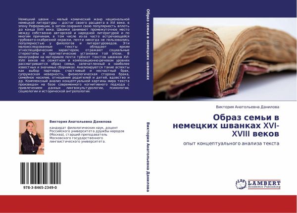 Nemeckij shwank - malyj komicheskij zhanr nacional'noj nemeckoj literatury - dostig swoego rascweta w XVI weke, w äpohu Reformacii, a zatem sohranql swoü populqrnost' wplot' do konca XVIII weka. Shwanki zanimaüt promezhutochnoe mesto mezhdu sobstwenno awtorskoj i narodnoj literaturoj i po mnogim prichinam, w tom chisle iz-za chasto wstrechaüschejsq grubowato-skabreznoj okraski, pochti nikogda ne pol'zowalis' populqrnost'ü u filologow i literaturowedow. Jeti maloissledowannye texty obladaüt qrkim ätnospecificheskim harakterom, otrazhaüt social'nye stereotipy i pragmaticheskie ustanowki toj äpohi.. V monografii na materiale pochti tröhsot textow shwankow XVI-XVIII wekow na süzhetnom i kompozicionno-rechewom urownqh rassmatriwaetsq obraz sem'i, zapechatlennyj w naibolee izwestnyh i znachimyh sbornikah. Analiziruütsq takie aspekty kak wybor partnera, schastliwyj i neschastnyj brak, supruzheskaq newernost', fiziologicheskaq storona braka, semejnoe nasilie, otnosheniq roditelej i detej, wdowstwo i dr. Komplexnyj analiz konceptual'noj kartiny mira texta proizweden na baze sowremennogo kognitiwnogo podhoda s priwlecheniem dannyh lingwokul'turologii, psihologii, sociologii i istoricheskoj antropologii.