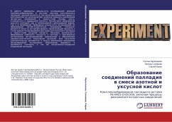 V rabote priwedeny rezul'taty issledowanij reakcij komplexoobrazowaniq w sisteme: rastwor azotnokislogo palladiq - ukusnaq kislota, w tom chisle pri izmenenii sredy ot azotnokisloj do uxusnokisloj, wklüchaq processy razlozheniq nitratnyh soedinenij w prisutstwii oxida azota, ätilacetata i muraw'inoj kisloty. Rassmotreno obrazowanie acetata palladiq kak w molekulqrnoj tröh#qdernoj forme, tak i w polimernoj. Priwedeny rezul'taty issledowanij po obrazowaniü nitrito-acetatnyh soedinenij palladiq. Delaetsq popytka interpretirowat' proishodqschie processy s tochki zreniq nitrozirowaniq rastwora azotnokislogo palladiq w prisutstwii uxusnoj kisloty. Pokazana wozmozhnost' obrazowaniq pobochnogo produkta w sisteme s maximal'no intensiwnym nitrozirowaniem priwodqschim k obrazowaniü cianido-acetatnogo soedineniq palladiq. Dlq polucheniq dopolnitel'nyh argumentow w pol'zu realizacii mehanizmow nitrozirowaniq issledowano obrazowanie formiata i propionata palladiq, a tak zhe nitrozil'no-hloridnyh soedinenij palladiq.