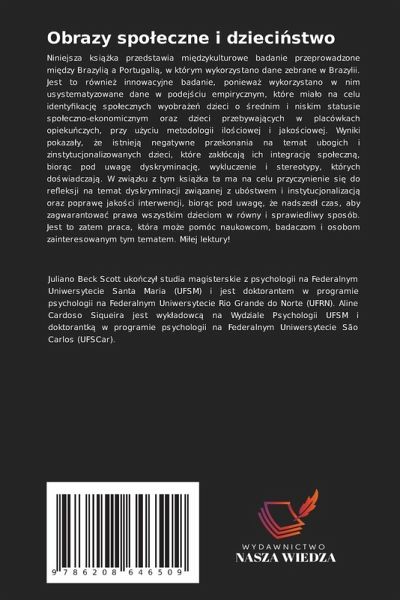 Niniejsza ksi¿¿ka przedstawia mi¿dzykulturowe badanie przeprowadzone mi¿dzy Brazyli¿ a Portugali¿, w którym wykorzystano dane zebrane w Brazylii. Jest to równie¿ innowacyjne badanie, poniewä wykorzystano w nim usystematyzowane dane w podej¿ciu empirycznym, które miäo na celu identyfikacj¿ spo¿ecznych wyobräe¿ dzieci o ¿rednim i niskim statusie spo¿eczno-ekonomicznym oraz dzieci przebywaj¿cych w placówkach opieku¿czych, przy u¿yciu metodologii ilo¿ciowej i jako¿ciowej. Wyniki pokazäy, ¿e istniej¿ negatywne przekonania na temat ubogich i zinstytucjonalizowanych dzieci, które zak¿ócaj¿ ich integracj¿ spo¿eczn¿, bior¿c pod uwag¿ dyskryminacj¿, wykluczenie i stereotypy, których do¿wiadczaj¿. W zwi¿zku z tym ksi¿¿ka ta ma na celu przyczynienie si¿ do refleksji na temat dyskryminacji zwi¿zanej z ubóstwem i instytucjonalizacj¿ oraz popraw¿ jako¿ci interwencji, bior¿c pod uwag¿, ¿e nadszed¿ czas, aby zagwarantowä prawa wszystkim dzieciom w równy i sprawiedliwy sposób. Jest to zatem praca, która mo¿e pomóc naukowcom, badaczom i osobom zainteresowanym tym tematem. Mi¿ej lektury!
