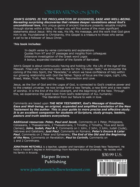 This work is comprised of extensive observations on the Gospel of John. Foundational to Christianity, this Gospel is critical to those who sense a call to be a follower of Jesus Christ. As a catalyst for our readers, our purpose is to give attention to the particular details that its author shares, and the nuances and allusions that populate the work. The author’s purpose is given in 20:31, "Yet these things have been written to the end that you folks can (would) continue trusting and keep on believing that (or: should progressively be faithful, because) Jesus is the Christ, God's Son, and so that in continually trusting, believing and being loyal, you can continuously hold (would progressively have) Life [other MSS: eonian life (or: life from, and in the realm of, the Age; age-lasting life)] within, in the midst of, in union with, and centered in, His Name." This unique genre of ancient literature is all about Jesus Christ: Who He was, His life, His message and the Work that God gave Him to do. It is a proclamation of the Incarnation of the Logos, the Word which was God and which was manifested in Jesus of Nazareth. This story begins with a clear allusion to Gen. 1:1 in the opening verse. It is the Good News about the New Creation. Signs, some of which are designated as such by the author and others that can be observed from the text, appear from chapter 2, and on throughout. Topics of focus are Jesus as the Logos, Light, Life, Bread, Water, Truth, Path (Way), Resurrection and Love. As the Logos, He is connected to God’s creative power, to the created universe, and at the same time, to the Hellenistic world of philosophy. It reaches back to the entire corpus of the OT. He speaks of a new Temple, a new Birth, and a new realm of worship. Metaphors of shepherds and sheep, of a Vine and its branches, and the theme of Life of the Age of the Messiah are also highlighted. The human side of Jesus is seen first of all as Him being "the Logos made flesh," and then "taking up residence among the People" (1:14). The social side of His life is presented as Him "being in the world" (1:10), attending a wedding (2:1ff), and striking up a conversation with a woman who was a stranger (4:3ff). His public ministry is mostly covered from chapters 2-12; 13 begins His final supper and then 14-16 offer continuous teaching of His disciples, with 17 presenting an intimate view of His relationship with both His Father and His disciples, in His long prayer for them. Chapters 18-20 involve His arrest, His trial, His crucifixion and then His resurrection. In 1:41 Andrew terms Him the Messiah, and in 1:49, Nathanael proclaims Him to be "the Son of God… the King of Israel," then in 6:69, Simon Peter will acclaim, "we by personal, intimate experience have come to know that You, Yourself, are God’s Holy One." Considerable time is spent on the various ways that the first sentence of the Prologue can be rendered, and the implications that are associated with each potential rendering. Also included is an extensive investigation of the Greek word Logos, which dominates the theme of Jn. 1:1-14; its use also pointed out elsewhere in this Gospel. Filled with numerous iconic verses for the "Christian Faith", this is a Gospel about continuously having and holding Life. It is indeed a message of Goodness, Ease and Wellbeing (The Good News). There is no mention of The Unseen (hades) nor of Gehenna (Valley of Hinnom, the dump outside Jerusalem). It is the End of the Old covenant, and the beginning of the New covenant: the continuous, progressive and perpetual redemption of ALL of humanity. Included, after the conclusion of John, is my translation of The Epistle of Barnabas.