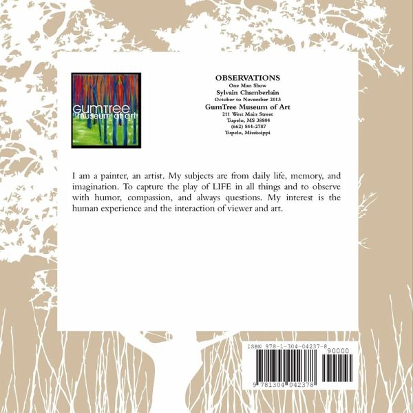 Exhibition Catalog for "OBSERVATIONS", October 2013 One Man Show of a series of 21 large scale portraits of people. the theme of the exhibition investigates the relationship between self and other on a personal level as well as artist/artwork/viewer. All color, full page images create a wonderful representation of the exhibition as well as a quality keepsake and reference. Introductions and artist's words contribute context as well as a preface by Museum executive director Kit Stafford and a reprint of a newspaper profile written by Scott Morris of the Mississippi Daily Journal.