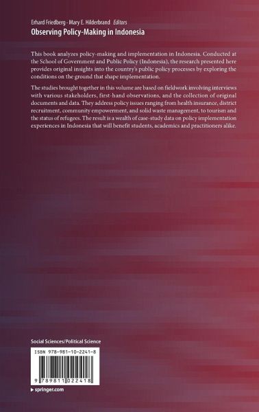 This book analyzes policy-making and implementation in Indonesia. Conducted at the School of Government and Public Policy (Indonesia), the research presented here provides original insights into the country's public policy processes by exploring the conditions on the ground that shape implementation. The studies brought together in this volume are based on fieldwork involving interviews with various stakeholders, first-hand observations, and the collection of original documents and data. They address policy issues ranging from health insurance, district recruitment, community empowerment, and solid waste management, to tourism and the status of refugees. The result is a wealth of case-study data on policy implementation experiences in Indonesia that will benefit students, academics and practitioners alike.