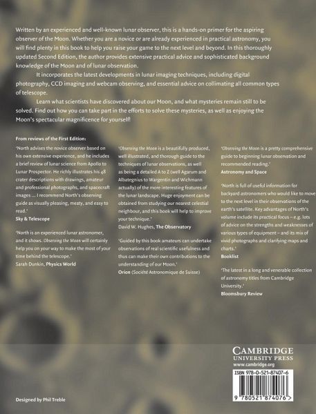 Written by an experienced and well-known lunar observer, this is a hands-on primer for the aspiring observer of the Moon. Whether you are a novice or are already experienced in practical astronomy you will find plenty in this book to help you raise your game to the next level and beyond. In this thoroughly updated Second Edition, the author provides extensive practical advice and sophisticated background knowledge of the Moon and of lunar observation. It incorporates the latest developments in lunar imaging techniques, including digital photography, CCD imaging, and webcam observing, and essential advice on collimating all common types of telescope. Learn what scientists have discovered about our Moon, and what mysteries remain still to be solved. Find out how you can take part in the efforts to solve these mysteries, as well as enjoying the Moon's spectacular magnificence for yourself!