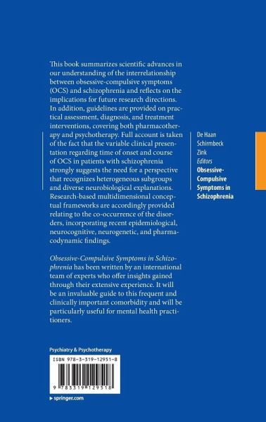 "The Obsessive-Compulsive disorders in Schizophrenia is written by the leading international experts and it provides a reader with systematic approach to the obsessive compulsive symptoms in schizophrenia and related disorders. ... Overall, it is a valuable tool for every mental health practitioner dealing with schizophrenia patients with comorbid OCD." (Vivian Badzim, Alcoholism and Psychiatry Research, Vol. 52, 2016)