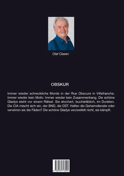 Côte d'Azur Krimi. Rue Obscure in Villefranche. Grausame Serienmorde. Nichts deutet auf den Täter hin. Die Spuren sind extrem verworren. die nationale Sicherheit ist in Gefahr. Die schöne Polizistin Gladys stochert im Dunklen. Die DST mischt mit, die CIA und der BND, selbst Außerirdische. Die vielen Helfer machen das Chaos nur größer. Kann Gladys den Fall entwirren?