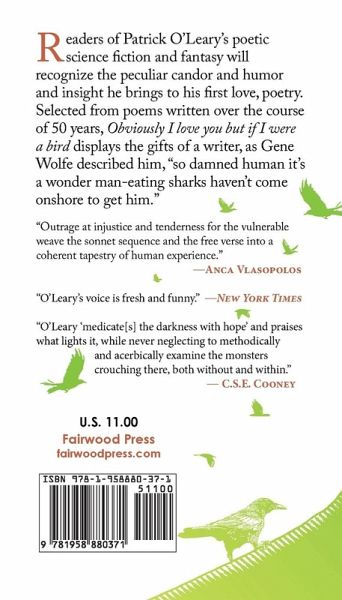 Readers of Patrick O'Leary's poetic science fiction and fantasy (The Gift, Door Number Three, The Impossible Bird, 51) as well as his collections (Other Voices, Other Doors and The Black Heart) will recognize the peculiar candor and humor and insight he brings to his first love, poetry. Selected from poems written over the course of 50 years, Obviously I love you but if I were a bird displays the gifts of a writer, as Gene Wolfe described him, "so damned human it's a wonder man-eating sharks haven't come onshore to get him."