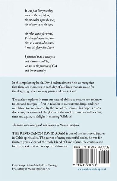 David Adam aims to help us recognize that there are moments in each day of our lives that are cause for thanksgiving, and to stop and praise God. Contents: Unbending the bow; Resting in God; Opening our eyes; Seeing with the heart; Being aware of what is around us; Knowing God, loving the world, loving God; Enjoying life, and enjoying God.