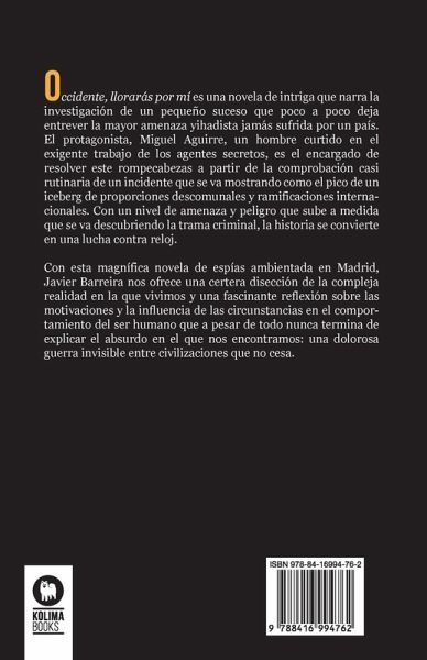 Novela de intriga que narra la investigación de un pequeño suceso que poco a poco deja en-trever la mayor amenaza yihadista jamás sufrida por un país. El protagonista, Miguel Aguirre, un hombre curtido en el exigen- te trabajo de los agentes secretos, es el encargado de resolver este rompecabezas a partir de la comprobación casi rutinaria de un incidente que, poco a poco, se va mostrando como el pico de un iceberg de proporciones descomunales y ramifica- ciones internacionales. Con un nivel de amenaza y peligro que sube a medida que se va descubriendo la trama criminal, la his- toria se convierte en una lucha contra reloj.
