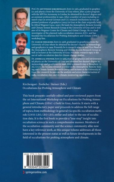 Occultations for Probing Atmosphere and Climate: Setting the Scene.- 1. Occultation Methodology in General.- Wave Optics Algorithms for Processing Radio Occultation Data in the Lower Troposphere: A Review and Synthesis.- The Radio-Holography Approach for GNSS Occultation Data Analysis: Review and Application to Resolving Fine Structures in the Atmosphere and Mesosphere.- Open Loop Tracking and Inverting GPS Radio Occultation Signals: Simulation Study.- Fourier Analysis of GNSS-LEO Radio Occultation Signals, Resolution and Limitations.- Canonical Transform Methods for Radio Occultation Data.- Unfolding of Radio Occultation Multipath Behavior Using Phase Models.- Abel Integral Inversion in Occultation Measurements.- Does a Priori Information Improve Occultation Measurements?.- Retrieval of Atmospheric Refractivity Profiles from Ground-Based GPS Measurements.- 2. GNSS-LEO Occultation.- GRAS-SAF Radio Occultation Data from EPS/Metop.- Deviations from a Hydrostatic Atmosphere in Radio Occultation Data.- Sensitivity of GNSS Occultation Profiles to Horizontal Variability in the Troposphere: A Simulation Study.- Advancement of GNSS Radio Occultation Retrieval in the Upper Stratosphere.- Ensemble-Based Analysis of Errors in Atmospheric Profiles Retrieved from GNSS Occultation Data.- Refractivity Profiles Obtained by Abel Inversion from a Down Looking GPS Radio Occultation Experiment at Mt. Fuji: Preliminary Results and Future Plan.- 3. LEO-LEO Occultation.- An Active Microwave Limb Sounder for Profiling Water Vapor, Ozone, Temperature, Geopotential, Clouds, Isotopes and Stratospheric Winds.- An Overview of the University of Arizona ATOMS Project.- The ACE+ Mission: An Atmosphere and Climate Explorer Based on GPS, GALILEO, and LEO-LEO Radio Occultation.- Simulating theInfluence of Horizontal Gradients on Retrieved Profiles from ATOMS Occultation Measurements - A Promising Approach for Data Assimilation.- Water Vapor Profiling Using Absorptive Occultation Measurements: A Comparison Between SAGE III and ATOMS.- The Genesis of the ACE+ Anti-Rotating Satellites Concept.- 4. Stellar and Solar Occultation.- The Stellar Occultation Technique: Past Achievements, Recent Developments, and Future Challenges.- Envisat/GOMOS Stellar Occultation: Inversion Schemes and First Analyses of Real Data.- Atmospheric Density, Pressure and Temperature Profile Reconstruction from Refractive Angle Measurements in Stellar Occultation.- Stratospheric Temperature and Ozone Sounding with ENVISAT/GOMOS Stellar Occultation.- Information Approach to Channel Selection for Stellar Occultation Measurements.- The Solar Occultation Mission ACE: An Overview.- Mesospheric Temperature and Ozone Sounding by the SMAS Solar Occultation Sensor.- 5. Use of Occultation Data.- Utility of Occultations for Atmospheric Wave Activity Studies: Results of GPS/MET Data Analyses and Future Plan.- Stratospheric Gravity Wave Fluctuations and Sporadic E at Mid-Latitudes with Focus on Possible Effects of the Andes.- The Detection of Upper Level Turbulence via GPS Occultation Methods.- Evaluation of Refractivity Profiles from CHAMP and SAC-C GPS Radio Occultation.- Ionospheric Radio Occultation Measurements and Space Weather.- The Mars Atmospheric Constellation Observatory (MACO) Concept.- Author Index.