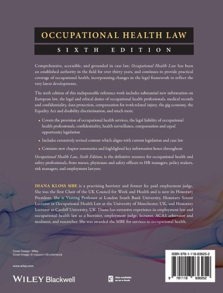 OCCUPATIONAL HEALTH LAW SIXTH EDITION Comprehensive, accessible, and grounded in case law, Occupational Health Law has been an established authority in the field for over thirty years, and continues to provide practical coverage of occupational health, incorporating changes in the legal framework to reflect the very latest developments. The sixth edition of this indispensable reference work includes substantial new information on European law, the legal and ethical duties of occupational health professionals, medical records and confidentiality, data protection, compensation for work-related injury, the gig economy, the Equality Act and disability discrimination, and much more. * Covers the provision of occupational health services, the legal liability of occupational health professionals, confidentiality, health surveillance, compensation and equal opportunity legislation * Includes extensively revised content which aligns with current legislation and case law * Contains new chapter summaries and highlighted key information boxes throughout Occupational Health Law, Sixth Edition, is the definitive resource for occupational health and safety professionals, from nurses, physicians and safety officers to HR managers, policy makers, risk managers, and employment lawyers.