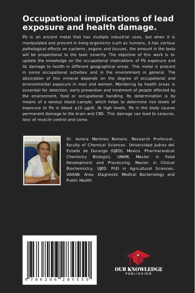 Pb is an ancient metal that has multiple industrial uses, but when it is manipulated and present in living organisms such as humans, it has serious pathological effects on systems, organs and tissues, the amount in the body will be proportional to the toxic severity. The objective of this work is to update the knowledge on the occupational implications of Pb exposure and its damage to health in different geographical areas. This metal is present in some occupational activities and in the environment in general. The absorption of this mineral depends on the degree of occupational and environmental exposure in men and women. Monitoring by health areas is essential for detection, early prevention and treatment of people affected by the environment, food or occupational handling. Its determination is by means of a venous blood sample, which helps to determine risk levels of exposure to Pb in blood 10 µg/dl. At high levels, Pb in the body causes permanent damage to the brain and CNS.This damage can lead to seizures, loss of muscle control and coma.
