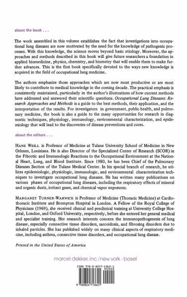 This book discriminates and emphasizes approaches that are likely to be productive in terms of understanding the causation and mechanisms of occupational lung diseases. It benefits research academicians in the field of lung diseases, and government and public health authorities.