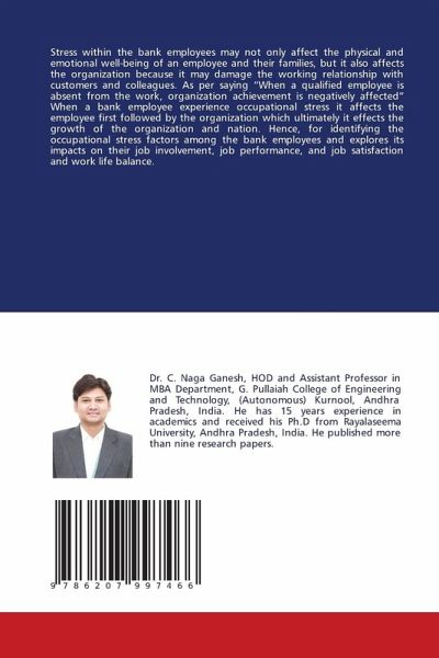 Stress within the bank employees may not only affect the physical and emotional well-being of an employee and their families, but it also affects the organization because it may damage the working relationship with customers and colleagues. As per saying "When a qualified employee is absent from the work, organization achievement is negatively affected" When a bank employee experience occupational stress it affects the employee first followed by the organization which ultimately it effects the growth of the organization and nation. Hence, for identifying the occupational stress factors among the bank employees and explores its impacts on their job involvement, job performance, and job satisfaction and work life balance.
