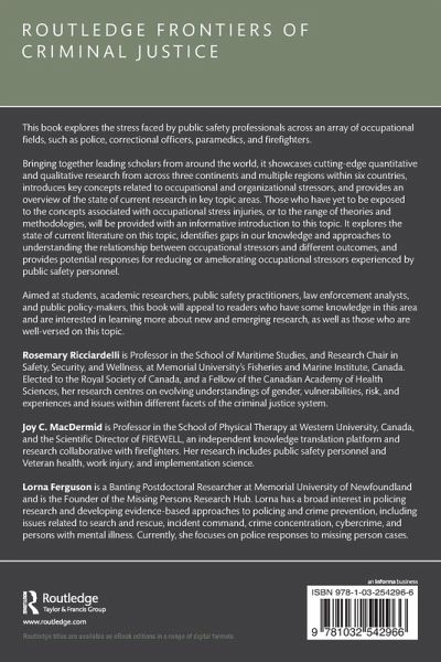 Introduction to Occupational Stress Injuries: Operational and Organizational Stressors among Public Safety Personnel "It Does Screw with Your Mental State": The Occupational Experiences of Detachment Services Assistants Working for the Royal Canadian Mounted Police 2. Police Procedurals' Construction of Unrealistic Images of Policing: Implications for Officer Stress 3. Community relations, workplace stress and well-being in the context of mass demonstrations, defunding, and anti-police sentiment: A national study of the experiences of United States law enforcement 4. Secondary Trauma in Police Officers Investigating Child Sexual Exploitation Materials The Practical and Emotional Demands of Working with Women on Probation 6. Burning out in Probation: An Exploration of Organizational, Operational, and Personal Stressors amongst Probation Workers in England and Wales 7. Evaluating Workplace Stress in Correctional Services The Link Between Stress and Cardiac Outcomes in Firefighters: An Example of Critical Analysis of Causation 9. Overview of Stress and Firefighter Mental Health 10. An Integrative Review to Develop the Unified Neuromatrix Allostatic Load and Resiliency Model (UNALARM) and Apply it to the Health of Firefighters and Other Public Safety Personnel 11. Social media as an occupational stressor: The impact of social media on the mental health and occupational performance of volunteer firefighters and other public safety personnel Hitting the mark: A survey process framework for informing evidence-based organizational responses to the psychological health needs of public safety employees 13. The Impact of Organizational Culture of the Mental Well-being of Public Safety Communicators 14. Family First: The Potential Value of Training Family Members to Provide Psychological First Aid (PFA) to their First Responders 15. Exploring the Effects of PSP Careers on Families Conclusion: Knowledge and Ways Forward
