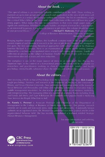 After receiving a Ph.D. in Social Psychology from the University of Michigan, Rick Crandall taught psychology, business, and research at the University of Mic higan, the University of Illinois, and Tex,is Christian University. Now publisher and founding editor of the journal of Social Behavior and Personality and editor and marketing columnist for Executive Edge (a middle management newsletter), he also teaches popular seminars on business, marketing, and entrepreneurship. The managing editor of a number of academic books including Work and Family, lob Stress, and Type' A Behavior, Dr. Crandall's latest popular book is Marketing Your Services for People Who Hate to Sell. Dr. Pamela L. Perrewe is Associate Professor and Chairman of the Department of Management in the College of Business at Florida State1 University. Her primary research h interests are in work and non-work stress, motivation, and personality. A nationally known authority on occupational stress, Dr. Perrewe has published over thirty journal articles in the organizational behavior field. She has recently co-authored a textbook entitled Strategic Human Resource Management.