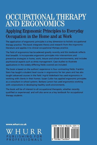 This practical book describes how the principles of ergonomics should be applied by occupational therapists. It clearly demonstrates how to create functional environments to prevent injuries and enabling people with disabilities to engage in everyday occupations.