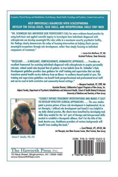 Learn Role Development techniques to provide more effective therapy to schizophrenic clients! Occupational Therapy in Forensic Psychiatry: Role Development and Schizophrenia presents a set of guidelines for clinical practice in Role Development. Role Development is a treatment intervention designed to assist individuals diagnosed with schizophrenia in developing social roles, task skills, and interpersonal skills. The book provides concrete, practical suggestions for using Role Develpoment with clients. These guidelines are thoroughly described as are methods for implementing treatment. With the resources provided in Occupational Therapy in Forensic Psychiatry, OT clinicians will have the tools and information to understand Role Development, to conduct evaluations, and to plan and implement treatment using the set of guidelines. The book describes a reseach study from a maximum-security psychiatric facility. Participants in the study had an extensive psychiatric history as well as criminal charges. Most no longer had active social roles but viewed their roles as patient or inmate. The intervention, Role Development, was successful in assisting them to develop roles such as worker, student, friend, and group member. Despite their very difficult life circumstances and serious mental illness, the participants responded very positively and demonstrated a willingness and ability to develop social roles, and the skills that are the foundation to the roles. Tables and figures highlight the results of the study. In Occupational Therapy in Forensic Psychiatry, you'll find: a set of guidelines for practicing Role Development a research study documenting the effectiveness of Role Development tables and figures highlighting the results of the research study practical tools, resources, and methods to implement Role Development case studies demonstrating the application of Role Development and much more! Occupational Therapy in Forensic Psychiatry is a comprehensive resource for OT clinicians and students. It provides the direction needed for health care practitioners to learn Role Development techniques. Clinicians who work with clients diagnosed with schizophrenia or other forms of severe and persistent mental illness can use the information in this book to provide effective treatment to their clients.
