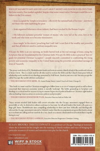 Jesus of Nazareth said and did a lot about money and power in his own time. But Jesus wasn't a ""free market capitalist,"" despite what some conservative Christians would like us to believe in the twenty-first century. --Jesus occupied the Temple in Jerusalem--effectively the national bank of his time--and threw out those who were exploiting the poor. --Jesus organized fishermen whose industry had been wrecked by the Roman Empire. --His followers included powerful ""women of means,"" who were last at the cross, first at the tomb, and who went on to become missionaries. --Jesus taught ""in the streets,"" preaching that God's ""side"" is not that of the wealthy and powerful and that all believers need to confront inequality now. #Occupy the Bible is an eye-opening, no-holds barred look at the real message of Jesus, using the Scriptures that are foundational for the Christian faith. #Occupy the Bible is also a practical ""how to"" guide for potential Christian ""occupiers""--people sincerely committed to confronting the rising poverty and economic inequality in the United States using the powerful, unvarnished message of Jesus of Nazareth.