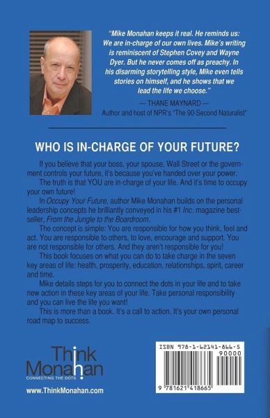 Who is in-charge of your life? YOU are! In Occupy Your Future, Mike Monahan builds on the personal leadership concepts in his #1 bestseller, From the Jungle to the Boardroom. It's all about personal responsibility. In this book, you'll learn how to connect the dots in your life and to take new action in these seven key areas: health, prosperity, education, relationships, spirit, career and time. It's time to occupy your future!