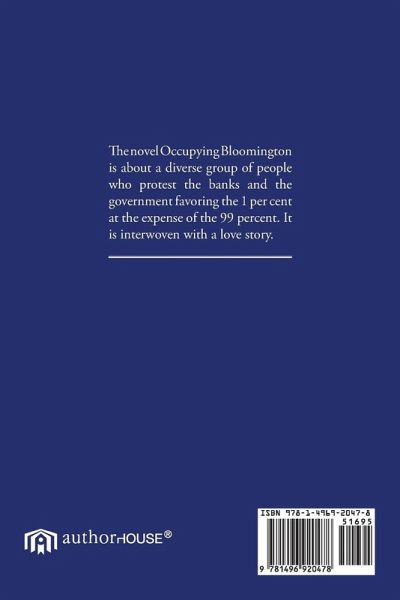 The novel Occupying Bloomington is about a diverse group of people who protest the banks and the government favoring the 1 per cent at the expense of the 99 percent. It is interwoven with a love story.