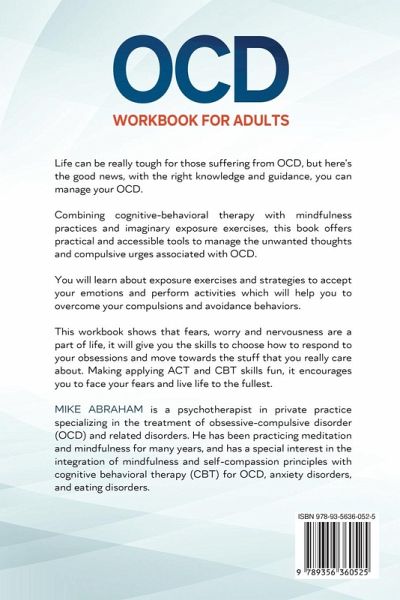 More than six million Americans have OCD. If you have obsessive-compulsive disorder (OCD), it is likely that your persistent, obsessive thoughts and time-consuming compulsions prevent you from fully enjoying life. But when you are accustomed to avoiding the things you fear, the thought of facing them head-on can be frightening and overwhelming. Life can be really tough for those suffering from OCD, but here's the good news, with the right knowledge and guidance, you can manage your OCD. Combining cognitive-behavioral therapy with mindfulness practices and imaginary exposure exercises, this book offers practical and accessible tools to manage the unwanted thoughts and compulsive urges associated with OCD. You will learn about exposure exercises and strategies to accept your emotions and perform activities which will help you to overcome your compulsions and avoidance behaviors. This workbook shows that fears, worry and nervousness are a part of life, it will give you the skills to choose how to respond to your obsessions and move towards the stuff that you really care about. Making applying ACT and CBT skills fun, it encourages you to face your fears and live life to the fullest. Workbook Exercises included This book contains multiple workbook exercises to better understand yourself and your condition. This book also contains journal so that you can track your progress and not relapse. About Author Mike Abraham is a psychotherapist in private practice specializing in the treatment of obsessive-compulsive disorder (OCD) and related disorders. He has been practicing meditation and mindfulness for many years, and has a special interest in the integration of mindfulness and self-compassion principles with cognitive behavioral therapy (CBT) for OCD, anxiety disorders, and eating disorders. Editorial reviews "The author has succeeded in providing a practical road map for people struggling with OCD to incorporate mindfulness into their CBT treatment. For many, this will be the addition that makes all the difference." -Carl Johnson, PhD, professor of psychology and neuroscience "This book is user-friendly and accomplishes the near impossible task of sharing complex neurological concepts using understandable language, helpful descriptions, and practical tips to move past OCD. Patients often begin treatment terrified of their brain, having such uncomfortable and often disturbing thoughts. I am so happy to have a book to help them understand the neuroscience behind OCD, so they can understand OCD from a brain-based perspective." Susan Winston LPCC, LPC, NCC, CCATP, founder and lead counselor at People Health care