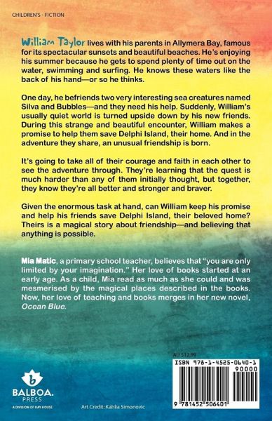 William Taylor lives with his parents in Allymera Bay, famous for its spectacular sunsets and beautiful beaches. He's enjoying his summer because he gets to spend plenty of time out on the water, swimming and surfing. He knows these waters like the back of his hand-or so he thinks. One day, he befriends two very interesting sea creatures named Silva and Bubbles-and they need his help. Suddenly, William's usually quiet world is turned upside down by his new friends. During this strange and beautiful encounter, William makes a promise to help them save Delphi Island, their home. And in the adventure they share, an unusual friendship is born. It's going to take all of their courage and faith in each other to see the adventure through. They're learning that the quest is much harder than any of them initially thought, but together, they know they're all better and stronger and braver. Given the enormous task at hand, can William keep his promise and help his friends save Delphi Island, their beloved home? Theirs is a magical story about friendship-and believing that anything is possible.