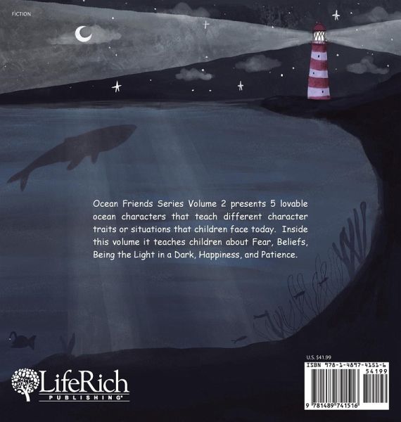 Ocean Friends Series Volume 2 presents 5 lovable ocean characters that teach different character traits or situations that children face today. Inside this volume it teaches children about Fear, Beliefs, Being the Light in a Dark, Happiness, and Patience.