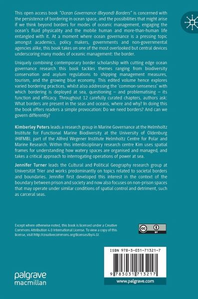 This Open Access book "Ocean Governance (Beyond) Borders" is concerned with the persistence of bordering in ocean space, and the possibilities that might arise if we think beyond borders for modes of oceanic management, engaging the ocean's fluid physicality and the mobile human and more-than-human life entangled with it. At a moment where ocean governance is a pressing topic amongst academics, policy makers, governments and non- governmental agencies alike, this book takes on one of the most overlooked but central devices underscoring many modes of oceanic management: the border.