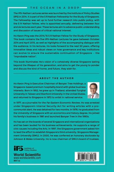 The IPS-Nathan Lectures series was launched by the Institute of Policy Studies (IPS) in 2014. It is part of the S R Nathan Fellowship for the Study of Singapore. The Fellowship was set up to fund further research into public policy, with the S R Nathan Fellow, who is appointed annually, delivering between four and six lectures each year. These lectures aim to advance public understanding and discussion of issues of critical national interest. Ho Kwon Ping was the 2014/15 S R Nathan Fellow for the Study of Singapore. This book contains the five IPS-Nathan Lectures he gave between October 2014 and April 2015, as well as highlights of the accompanying dialogue with the audience. In his lectures, Ho looks forward to the next 50 years, offering innovative ideas and robust views on how governance and key institutions can evolve to ensure the sustainable continuation of Singapore — the "improbable nation". This book illuminates Ho's vision of a cohesively diverse Singapore lasting beyond the lifespan of his generation, and aims to get the young to ponder and discuss the kind of home, and future, they wish for.