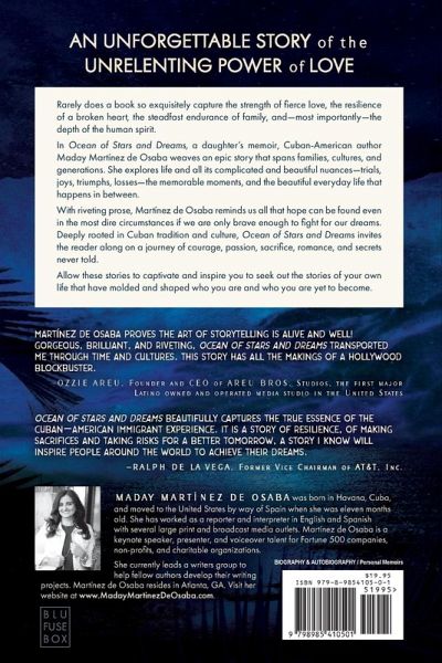 Step back in time with Cuban-American author Maday Martinez de Osaba as she recounts her family's rich history-the trials, joys, triumphs, and the life that happens in between. She beautifully unravels the elaborate details of her family and how they overcame the tragedies that life sometimes throws at us. Martinez de Osaba's intricately woven words and stories remind the reader to celebrate the journey rather than the destination. She exposes layers of the human spirit and the intangible longing a soul has to find love and make it a home. Follow along on this epic journey-from 1930s Cuba to an escape to Spain from Castro's oppression, and finally to freedom in the United States. Martinez de Osaba chronicles her family lineage and history with honesty and authenticity. This is a story about what we find when we seek to discover our family's past. We always find more than we knew-both the good and bad-which make our life stories worth telling.