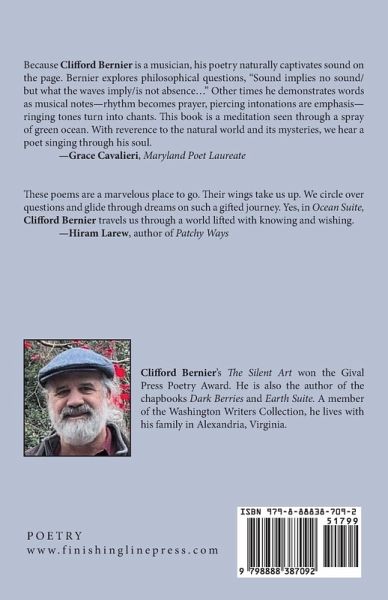 Ocean Suite is a new book of twenty-six poems that delves into the connections between sound, music and the language we use to understand our own baffling existence. Starting with the most elemental "voices" of nature-the crash of waves on the shore, bird calls, the wind in the reeds - Ocean Suite listens closely, teasing a lively, playful music out of sound, trying to make out what the world is telling us. It's an exercise in listening. But it's also a search for meaning, and it leads, ultimately, to a kind of profound and oceanic peace, beyond sounds, beyond language, beyond even silence itself.
