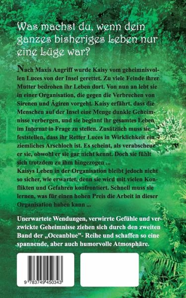 Nach Maxis Angriff wurde Kaisy vom geheimnisvollen Luces von der Insel gerettet. Zu viele Feinde ihrer Mutter bedrohen ihr Leben dort. Von nun an lebt sie in einer Organisation, die gegen die Verbrechen von Sirenen und Ägiren vorgeht. Kaisy erfährt, dass die Menschen auf der Insel eine Menge dunkle Geheimnisse verbergen, und sie beginnt ihr gesamtes Leben im Internat in Frage zu stellen.Umgeben von fremden Menschen, die den Idealen ihrer Mutter folgen, versucht Kaisy sich neu zu orientieren und herauszufinden, was das Richtige ist. Zusätzlich muss sie feststellen, dass ihr Retter Luces in Wirklichkeit ein ziemliches Arschloch ist. Es scheint, als verabscheue er sie, obwohl er sie gar nicht kennt. Doch sie fühlt sich trotzdem zu ihm hingezogen ...Kaisys Leben in der Organisation bleibt jedoch nicht so sicher, wie erwartet, denn sie wird mit vielen Konflikten und Gefahren konfrontiert. Schnell muss sie lernen, was für einen hohen Preis die Arbeit in dieser Organisation haben kann ...Unerwartete Wendungen, verwirrte Gefühle und verzwickte Geheimnisse ziehen sich durch den zweiten Band der Oceanblue - Reihe und schaffen so eine spannende, aber auch humorvolle Atmosphäre.