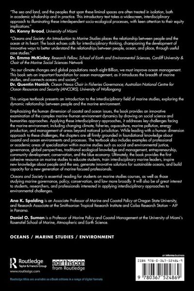 "Oceans and Society: An Introduction to Marine Studies places the relationship between people and the ocean at its heart. The book echoes calls for interdisciplinary thinking, championing the development of innovative ways to better understand the relationships between people, ocean, and place, through useful case studies."