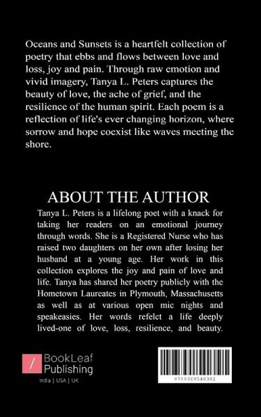 Oceans and Sunsets is a heartfelt collection of poetry that ebbs and flows between love and loss, joy and pain. Through raw emotion and vivid imagery, Tanya L. Peters captures the beauty of love, the ache of grief, and the resilience of the human spirit. Each poem is a reflection of life's ever-changing horizon, where sorrow and hope coexist like waves meeting the shore. Whether you have loved deeply, mourned profoundly, or simply stood in awe of life's fleeting beauty, this short collection will speak to the depths of your heart.