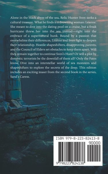 Dive into an interstellar world of ancient sea monsters and shapeshifters with the first in the Underwater series, and explore the secrets of the deep. Alone in the black abyss of the deep sea, Cetean Relic Hunter Sven hopes to collect a cultural treasure for his people. What he finds instead is a waterlogged human woman he can't resist. Leanne wants to dive back into the dating pool by taking a cheap cruise vacation. When she takes an unplanned dive off the ship in a freak hurricane, she unwittingly falls into the fins of a waiting hotty-of the supernatural variety. Separated by language and racial barriers, but bound by connections that transcend their physical differences, Leanne and Sven want to make it work. Bad weather, hostile shapeshifters, disapproving parents, and an interfering Council of Elders set obstacles to keep them apart. Will they succeed, and remain together to continue Sven's Hunt? Or will a plot by domestic terrorists be the downfall of them all? Dive deep into the interstellar world in the first book in the Underwater Series, and discover a world of ancient monsters, shapeshifters, covens, and romance hot enough to boil the seas. This edition includes a teaser chapter from the second book in the series, Sand's Caress.