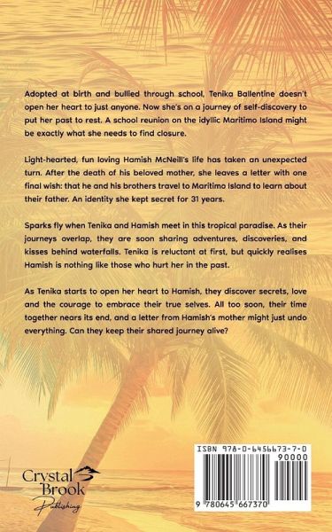 TWO HEARTS. TWO SECRETS. ONE JOURNEY. Adopted at birth and bullied through school, Tenika Ballentine doesn't open her heart to just anyone. Now she's on a journey of self-discovery to put her past to rest. A school reunion on the idyllic Maritimo Island might be exactly what she needs to find closure. Light-hearted, fun loving Hamish McNeill's life has taken an unexpected turn. After the death of his beloved mother, she leaves a letter with one final wish: that he and his brothers travel to Maritimo Island to learn about their father. An identity she kept secret for 31 years. Sparks fly when Tenika and Hamish meet in this tropical paradise. As their journeys overlap, they are soon sharing adventures, discoveries, and kisses behind waterfalls. Tenika is reluctant at first, but quickly realises Hamish is nothing like those who hurt her in the past. As Tenika starts to open her heart to Hamish, they discover secrets, love and the courage to embrace their true selves. All too soon, their time together nears its end, and a letter from Hamish's mother might just undo everything. Can they keep their shared journey alive?